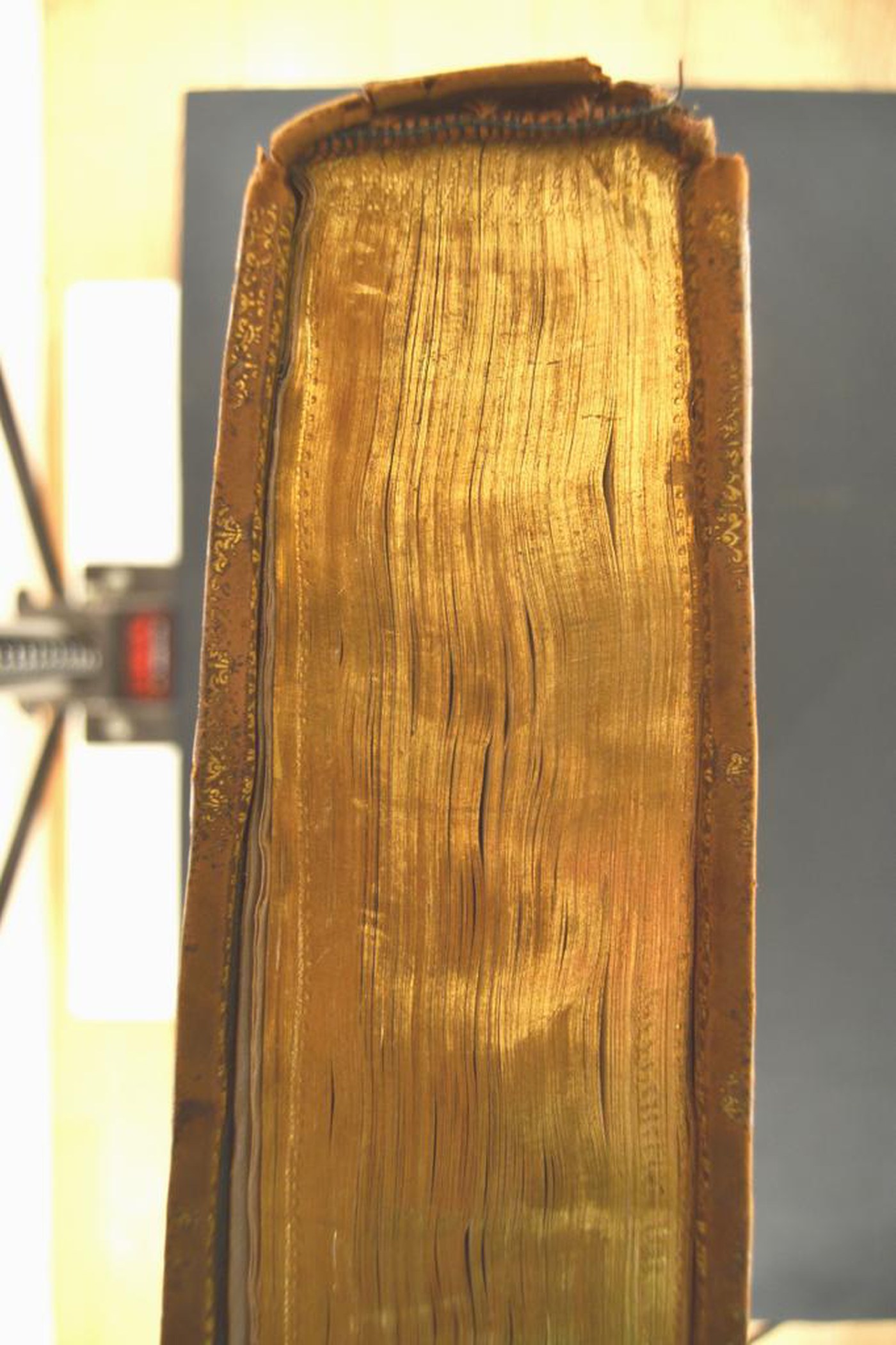 I fregi e le note tipografiche consentono di assegnare la legatura al terzo quarto del XVIII secolo, eseguita a Roma. In evidenza le carte di guardia marmorizzate e i tagli dorati brillanti incisi.