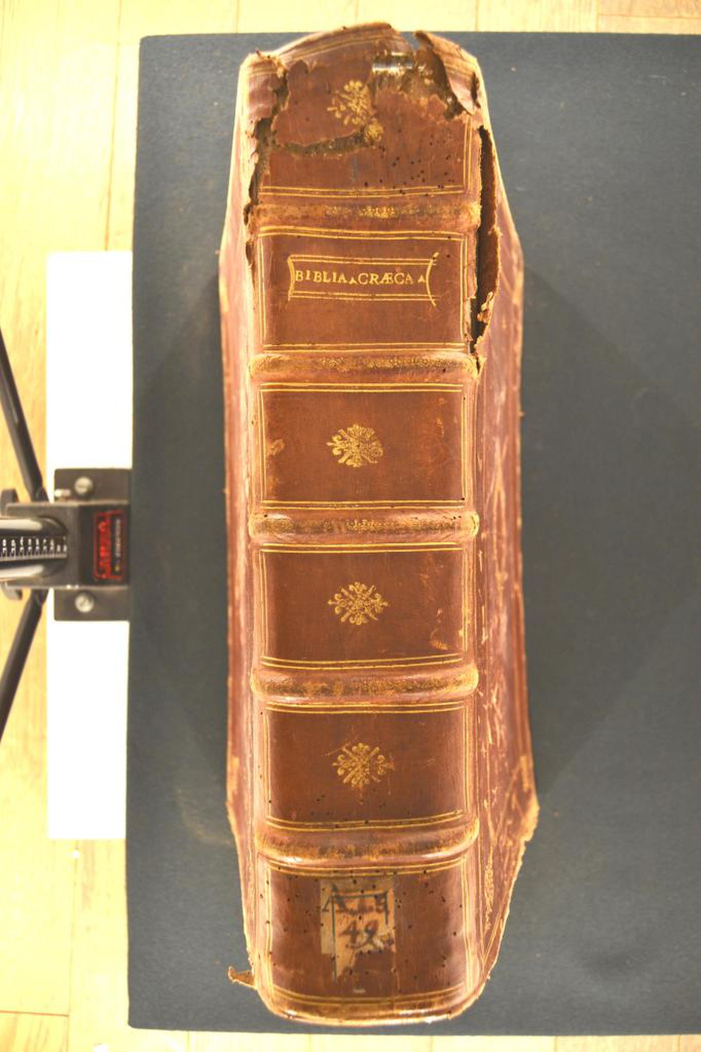 Tēs theias graphēs, palaias dēladē kai neas diathēkēs, apanta. Diuinae scripturae, nempe Veteris ac Noui Testamenti, omnia, recens à viro doctissimo & linguarum peritissimo diligenter recognita, & multis in locis emendata, variisque lectionibus ex diuersorum exemplarium collatione decerptis, & ad Hebraicam veritatem in Veteri Testamento reuocatis aucta & illustrata, Francofurti : apud Andrea Wecheli heredes, Claudium Marnium, & Ioan. Aubrium, 1597 (°Francoforte s.M. : Andreas Wechel eredi, Claude Marne & Jean Aubry!), 381x245x85 mm.