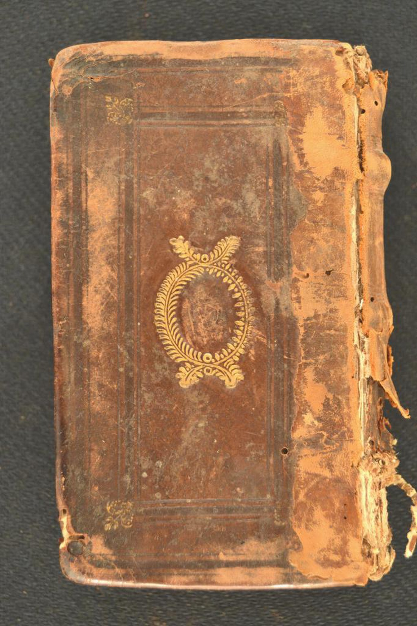 Il decoro à branchages e le note tipografiche assegnano la legatura al primo quarto del XVII secolo, verosimilmente eseguita in Francia. Frontespizio illustrato.
