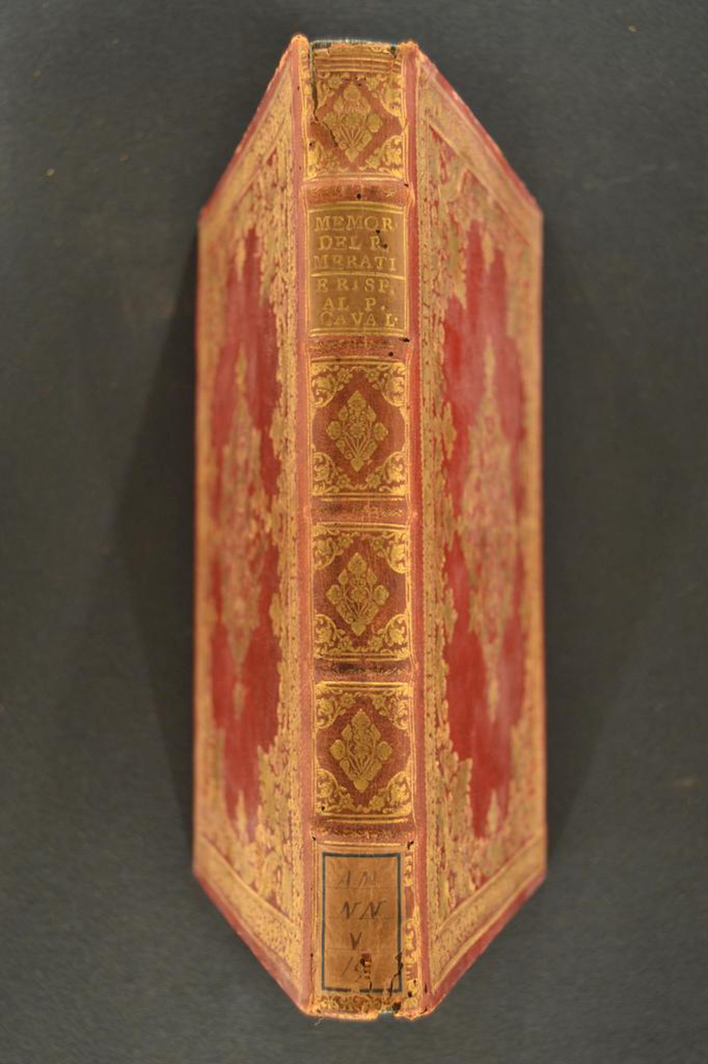 I fregi e le note tipografiche consentono di assegnare la legatura al terzo quarto del XVIII secolo, eseguita nel Veneto. In evidenza le carte di guardia marmorizzate policrome pettinate, i margini dei contropiatti i tagli dorati brillanti incisi.