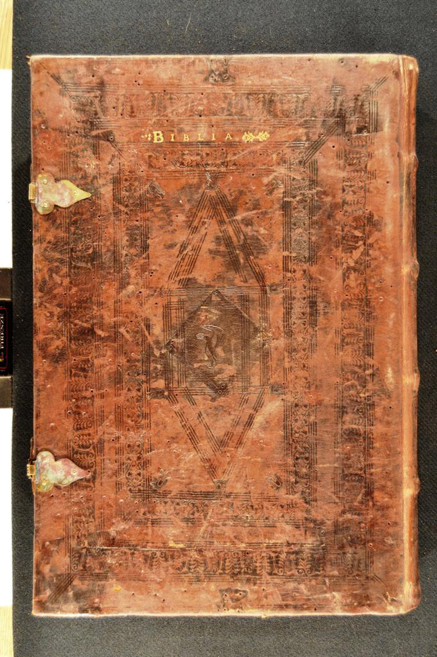 Biblia sacra utriusq[ue] Testme[n]ti: : dilige[n]ter recognita [et] emendata, no[n] paucis locis: quae corrupta era[n]t:+ collatio[n]e hebraico[rum] voluminu[m] restitutis. Item in fronte libri ex Athanasio fragmentum de libris utriusq[ue] Testamenti, Nuremberg[a]e : Per Foedericum Peypus. Sumptu integerrimi viri Joannis Koberger Nuremberge[n]sis, 1523, 376x251x70 mm.
