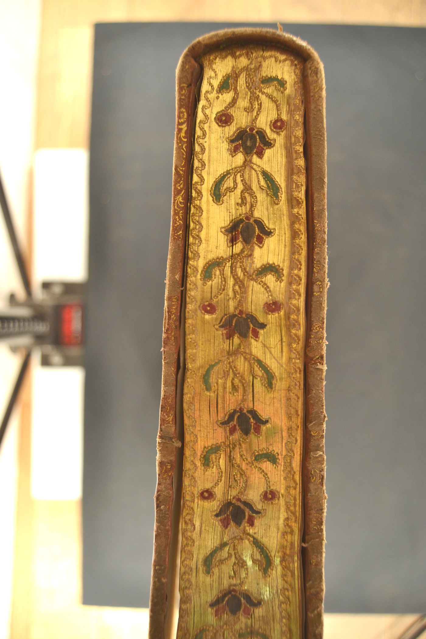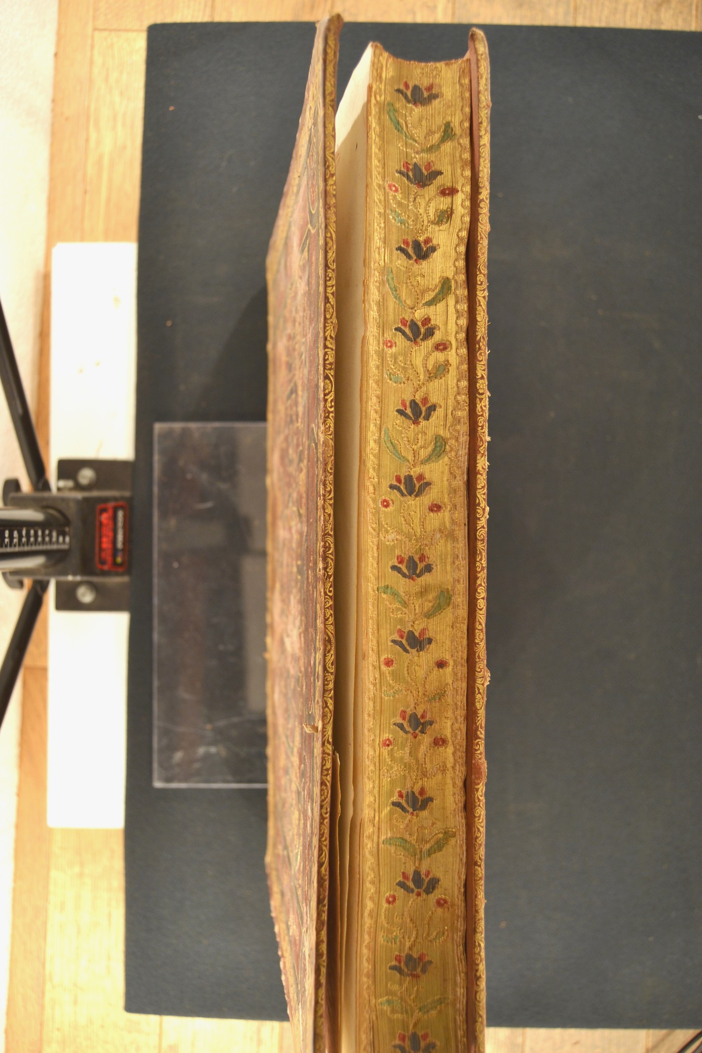 L’impianto ornamentale del genere post-fanfare, i fregi e le note tipografiche inducono ad assegnare la legatura al secondo quarto del XVIII secolo, eseguita nell’Italia meridionale. In evidenza, i tagli dorati brillanti, incisi e colorati.