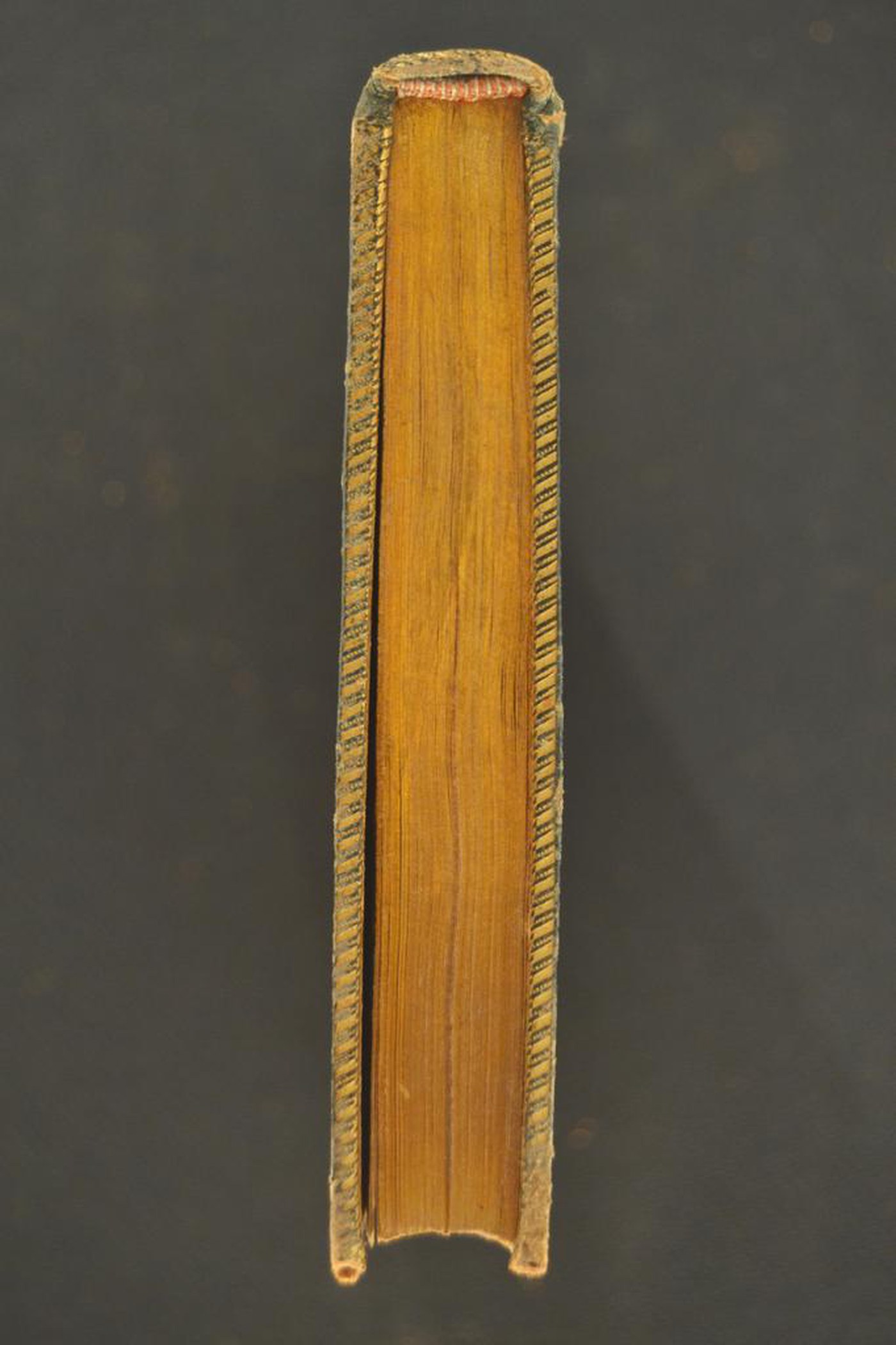 I fregi dal particolare gusto e le note tipografiche consentono di assegnare la legatura alla seconda metà del XVIII secolo eseguita in Inghilterra, verosimilmente eseguita a Londra considerato il ruolo egemone svolto dalla capitale nel commercio librario anglosassone. In evidenza le carte di guardia marmorizzate policrome, i margini dei contropiatti ornati e i tagli dorati brillanti.