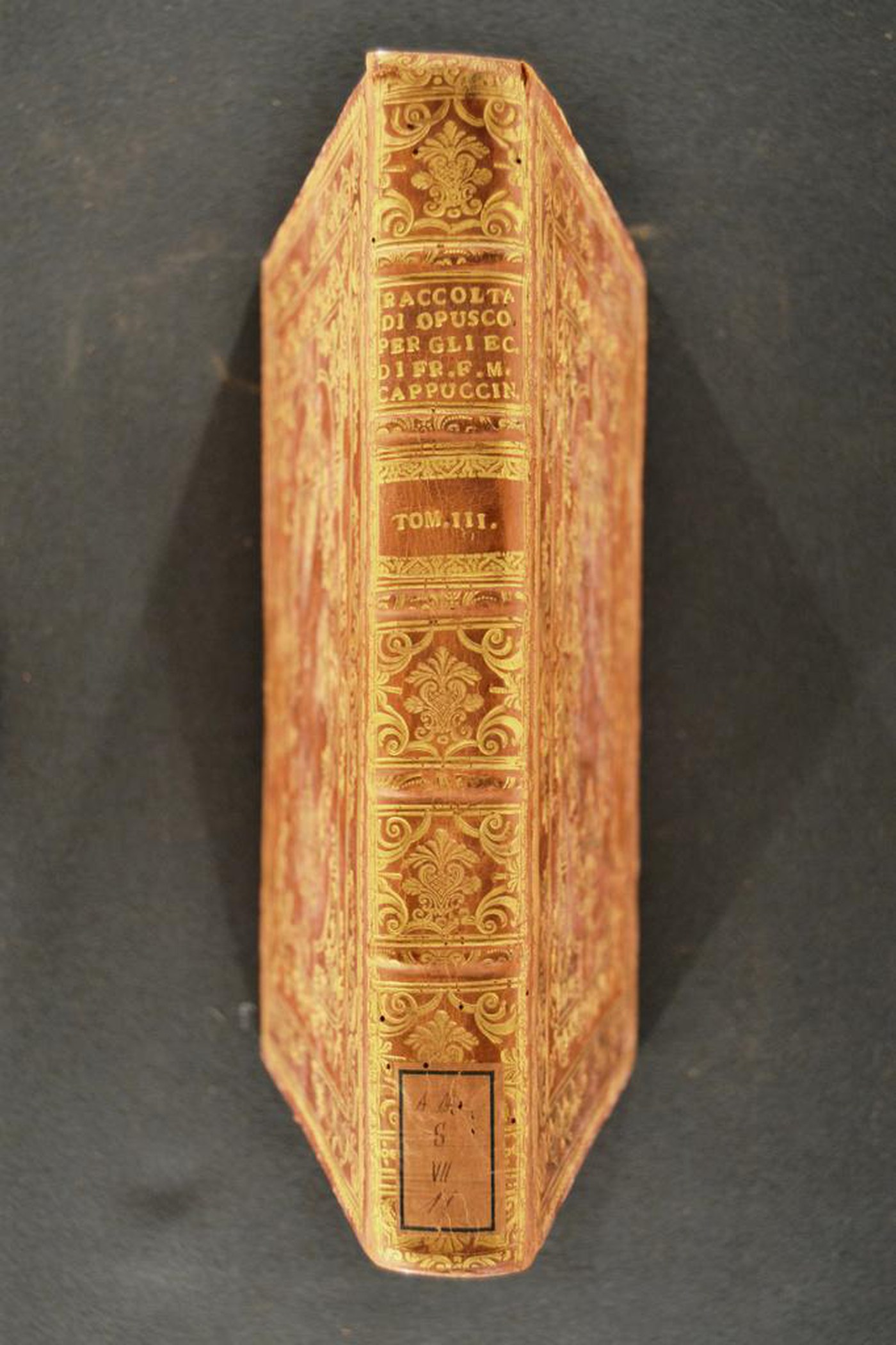 {Raccolta di trattati, opuscoli, epistole e sermoni de' SS. Padri greci e latini intorno ai doveri degli ecclesiastici tratti in italiano, e illustrati con copiosissime note da frate Felice Maria da Napoli cappuccino tomo primo [-9.]} 3, In Napoli : Presso Giovanni di Simone, 1754, 268x198x34 mm.