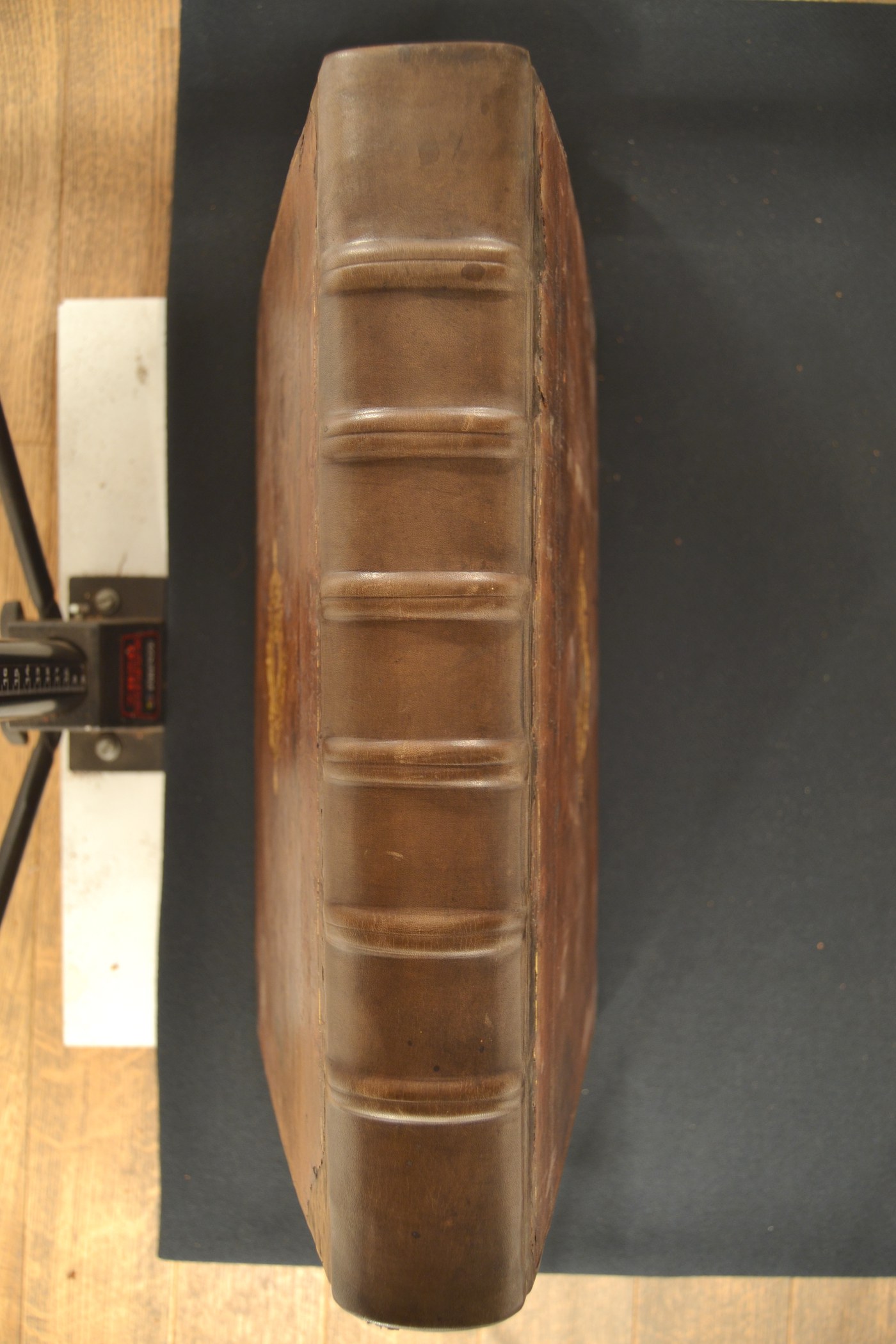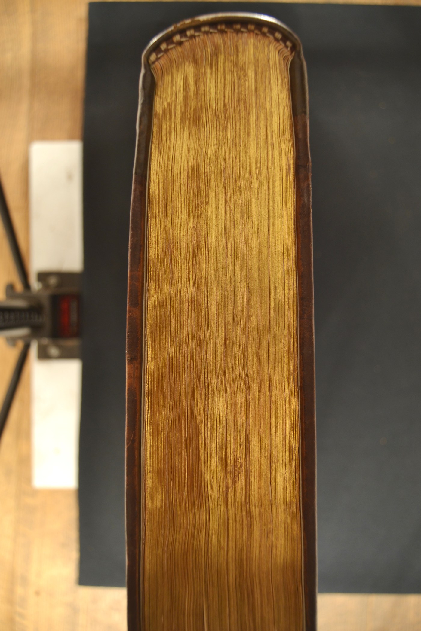La placca e le note tipografiche consentono di assegnare la legatura alla metà del XVI secolo, eseguita in Francia, a Parigi in particolare considerato il ruolo egemone della ville lumière esercitato nel commercio librario transalpino. In evidenza i tagli dorati. Volume appartenuto al convento dei Minoriti in Bologna.