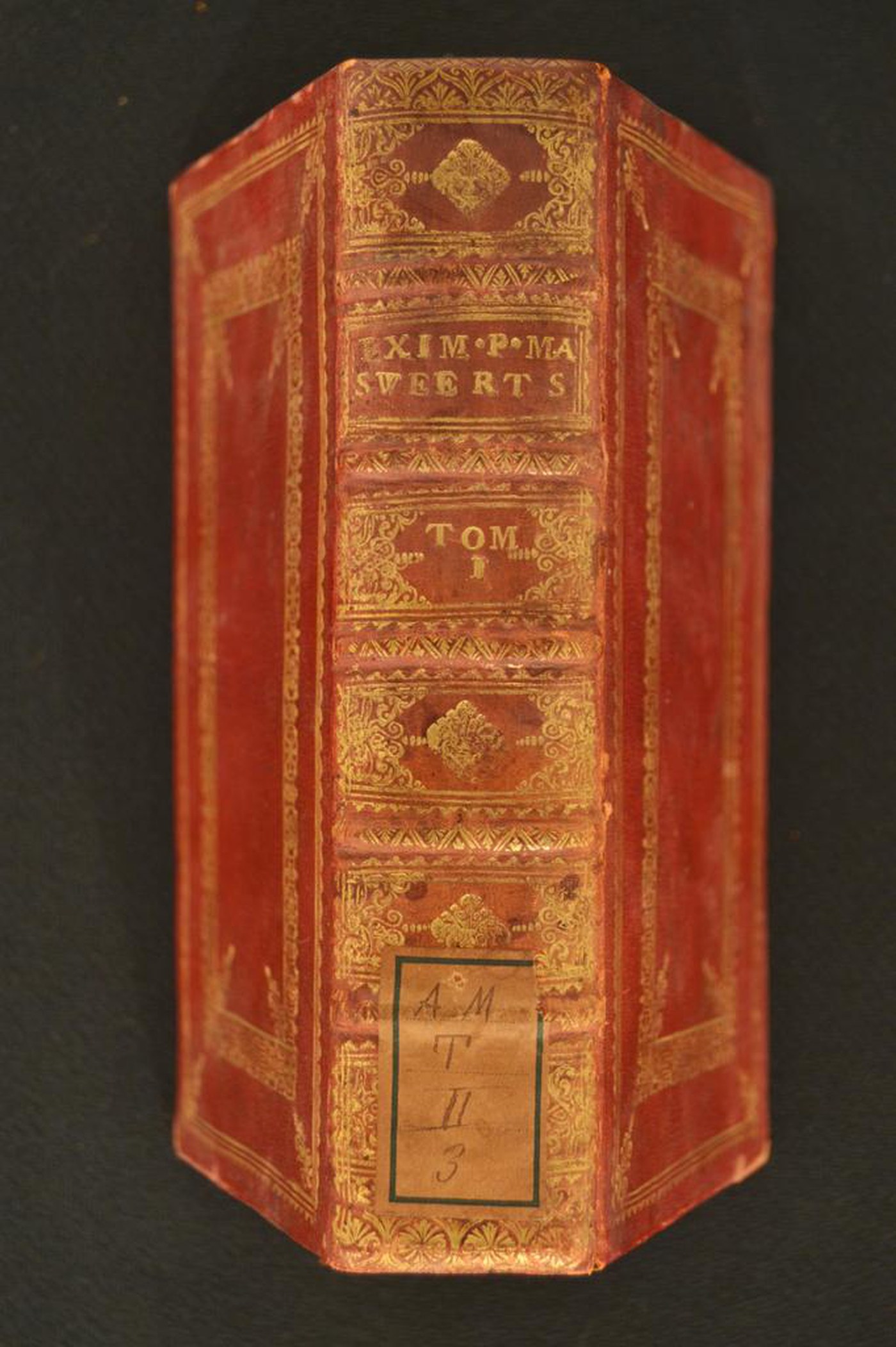 I fregi e le note tipografiche consentono di assegnare la legatura alla seconda metà (?) del XVIII secolo, eseguita a Roma (?). In evidenza le carte di guardia marmorizzate policrome pettinate e i tagli dorati brillanti incisi.