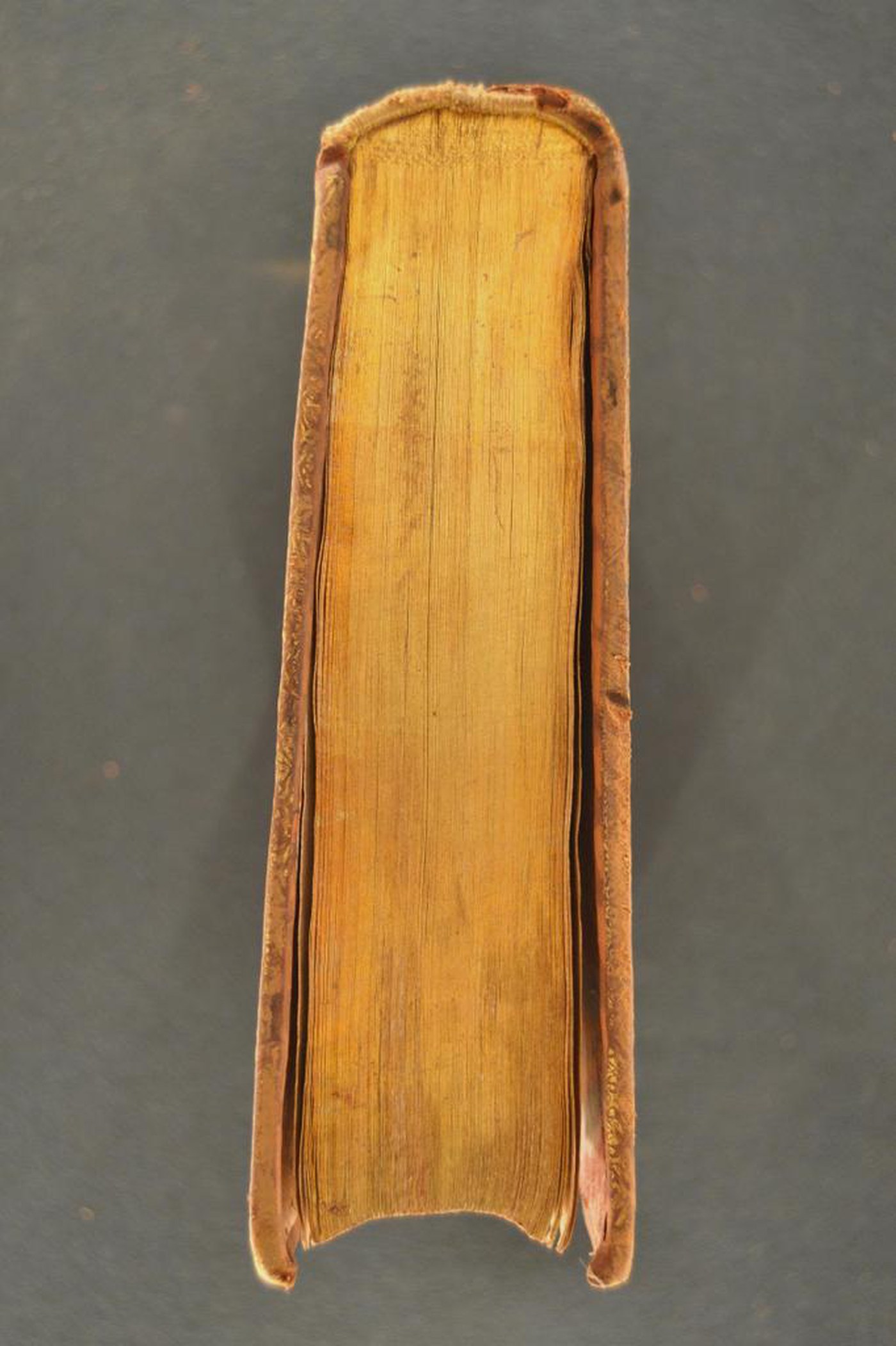 I fregi, e le note tipografiche consentono di assegnare la legatura alla prima metà del XVIII secolo, eseguita a Napoli. In evidenza i contropiatti rivestiti da foglio di carta marmorizzata policroma pettinata e i tagli dorati brillanti incisi.