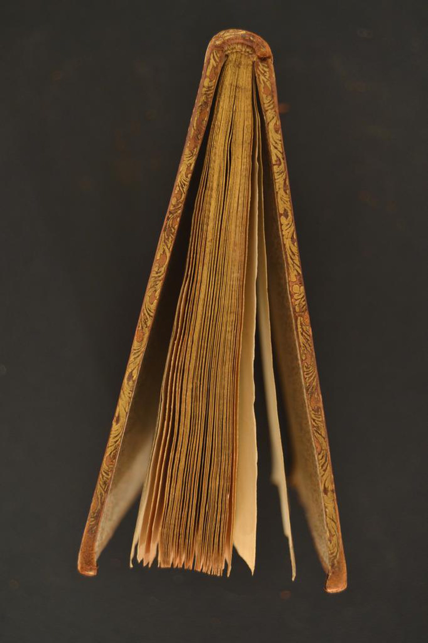 I fregi e le note tipografiche consentono di assegnare la legatura al secondo quarto del XVIII secolo, eseguita a Roma. In evidenza le carte di guardia marmorizzate policrome e i tagli dorati brillanti.