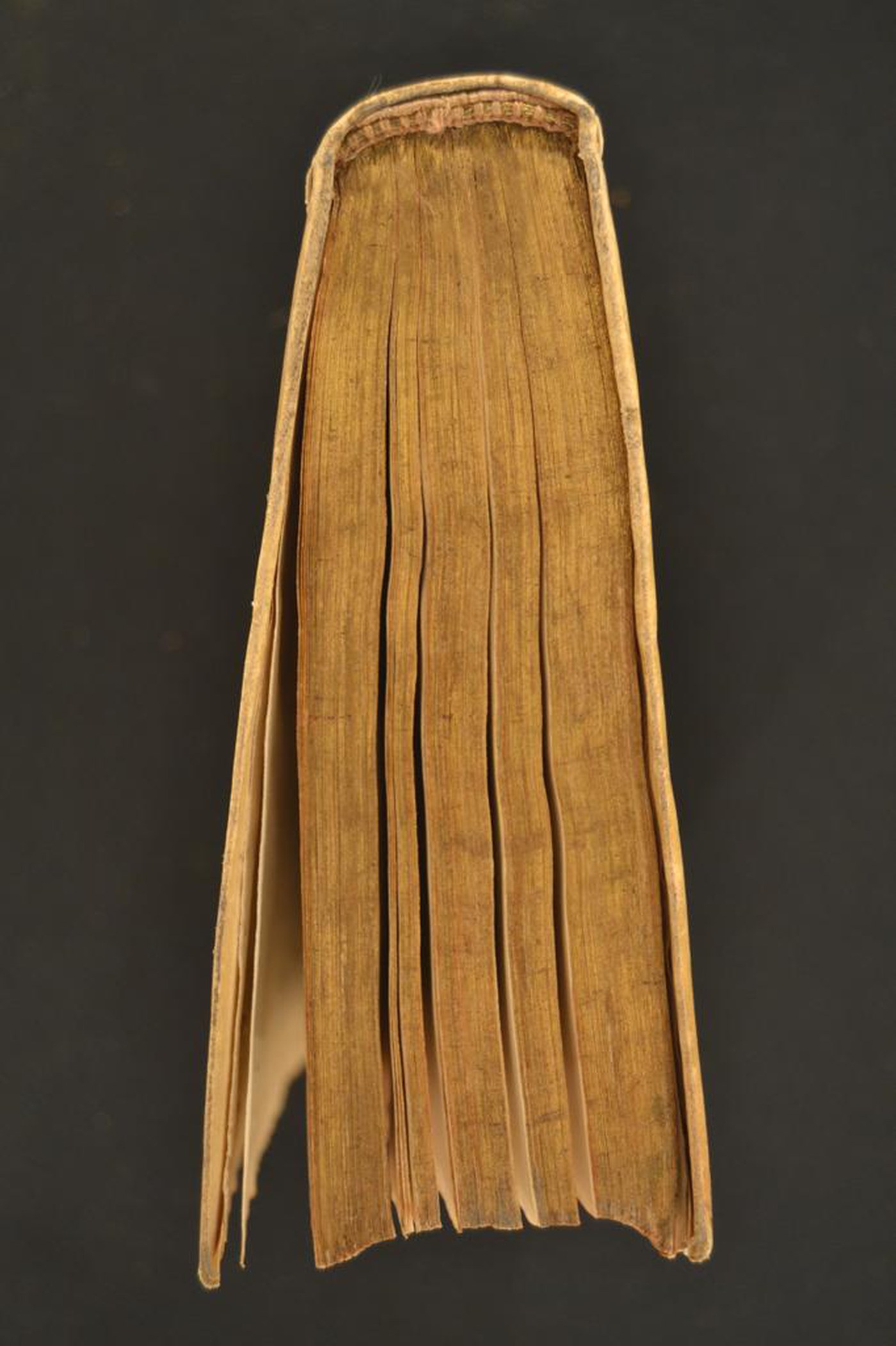 I fregi e le note tipografiche inducono d assegnare la legatura alla metà del XVII secolo, verosimilmente eseguita a Roma. In evidenza l’anima in pelle allumata dei capitelli lavorati, i rimbocchi accuratamente rifilati e i tagli dorati.