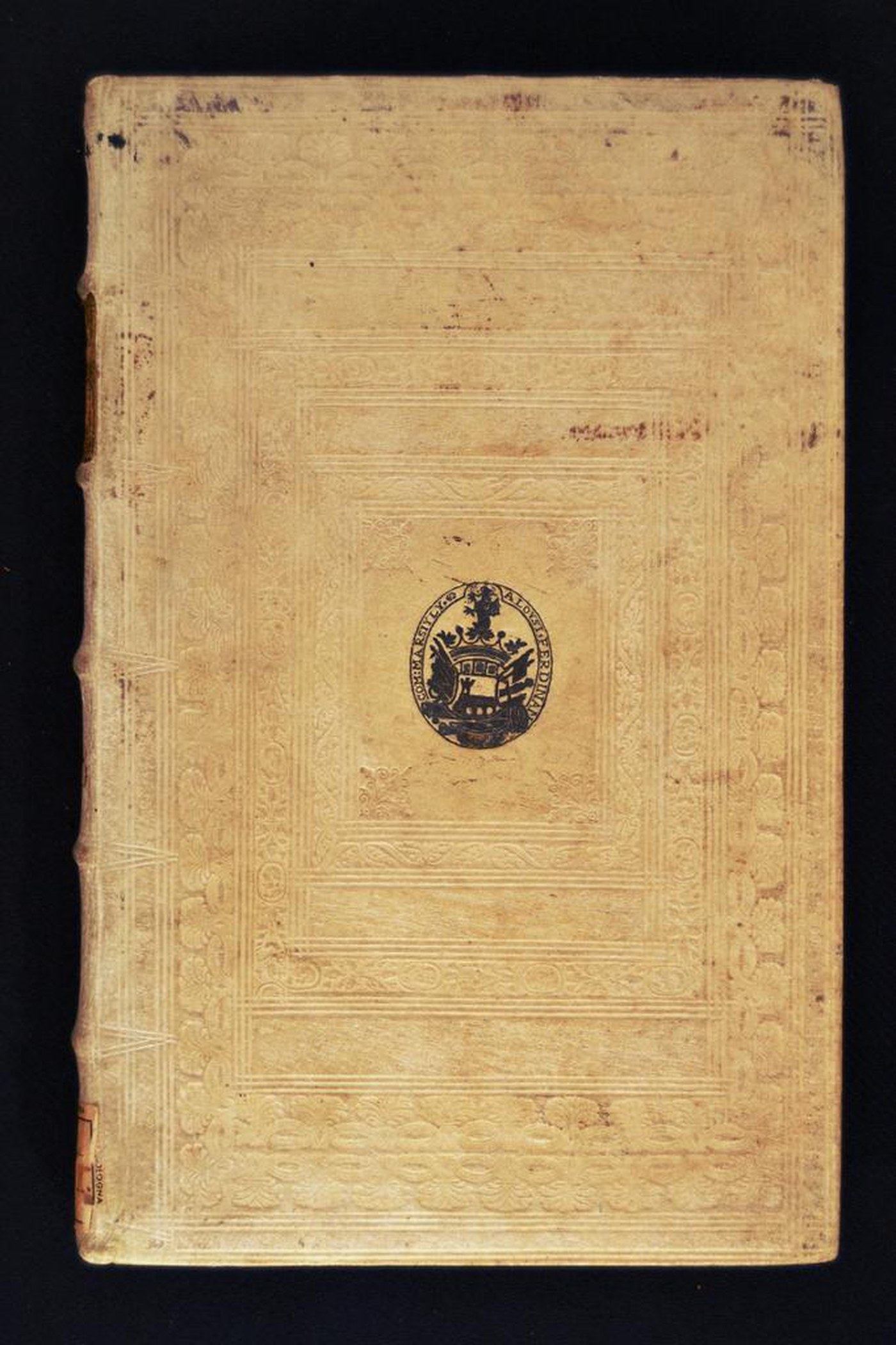 Il genere di manufatto e i fregi inducono a assegnare la legatura al XVII/XVIII secolo, eseguita in area tedesca considerate le testine antropomorfe, di reminiscenza cinquecentesca, i nastri tratteggiati alternati a fronde e le note biografiche del possessore. In evidenza i rimbocchi discretamente rifilati e i tagli rustici.