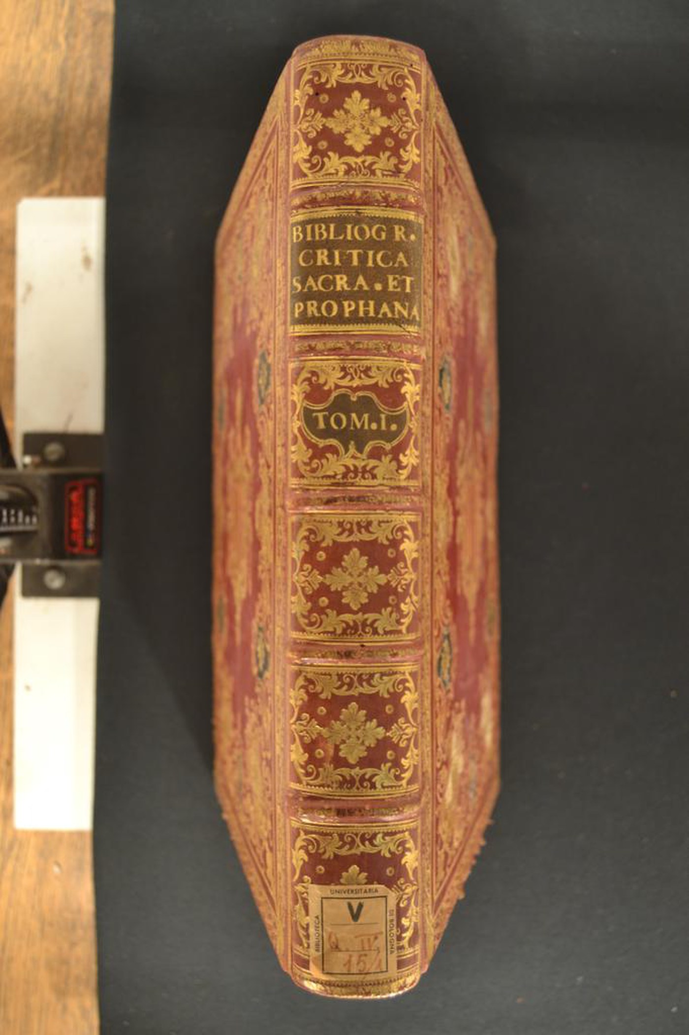 Miguel : de San Jose <1682-1757>, Benedicta sit SS. Trinitas. Bibliographia critica, sacra et prophana in tres tomos, et volumina seu Partes quatuor distributa: et grandi operi: adumbratum prouectorum lexicon, siue idioma sapientum... Authore Rmo. P. Fr. Michaele a S. Joseph patria Madritano olim philosophiae ac sacrae Theologiae Professore.., Matriti : ex Typographia Antonii Marin, 1740-1742, 354x235x52 mm.