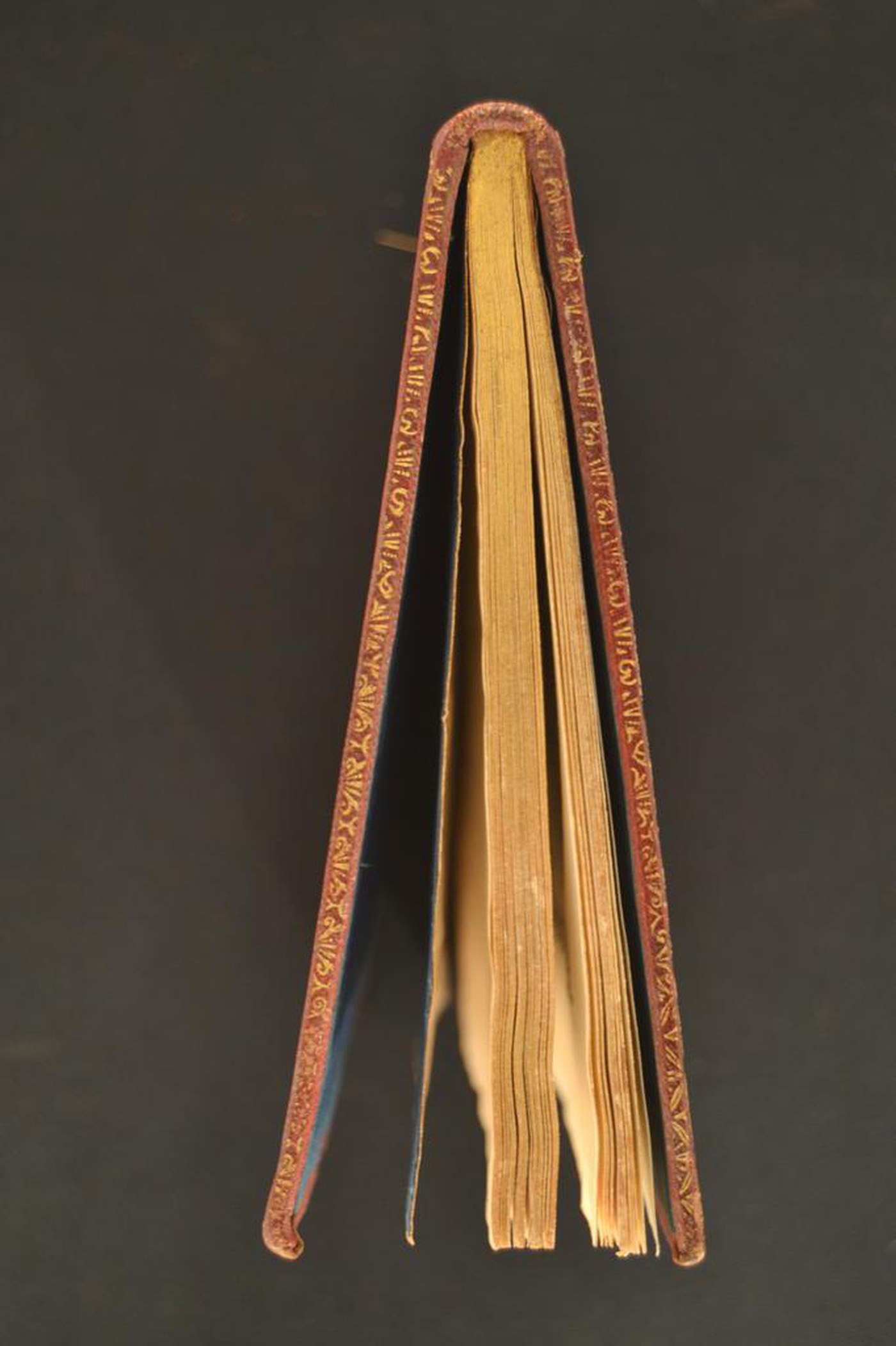 L’impianto ornamentale a mosaico, i caratteristici nastri intrecciati accantonati e le note tipografiche inducono ad attribuire la legatura alla metà del XVIII secolo, eseguita a Madrid da Antonio de Sancha vissuto tra il 1720 e il 1790 del quale questa Istituzione custodisce alcuni esemplari. In evidenza le carte di guardia in tessuto, i tagli dorati brillanti, la tavola calcocrafica. Volume donato dal bibl. Veggetti.