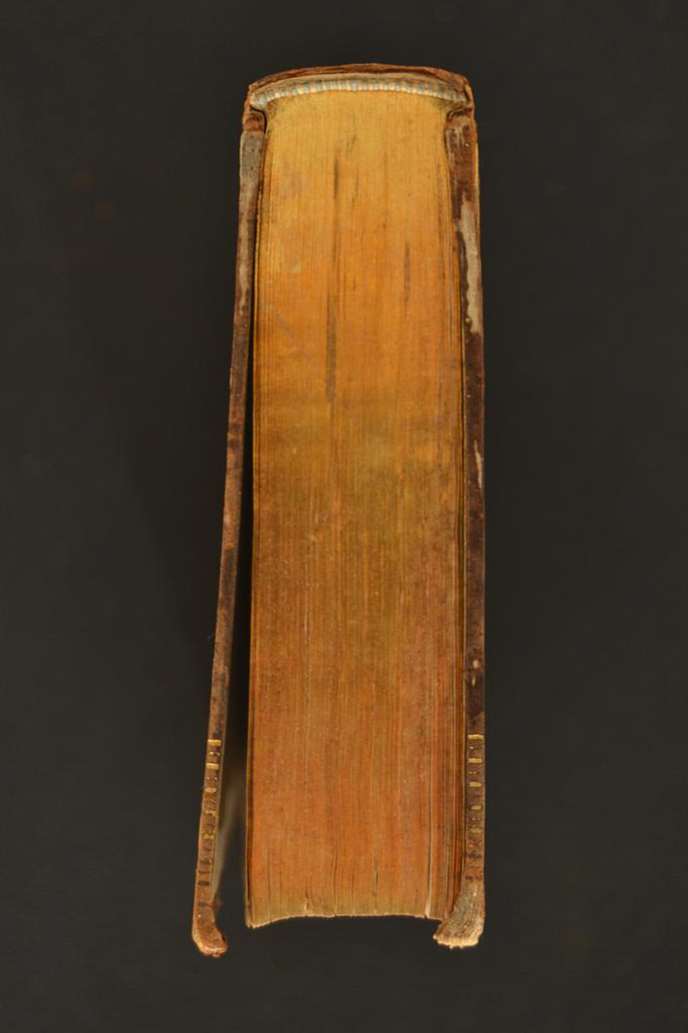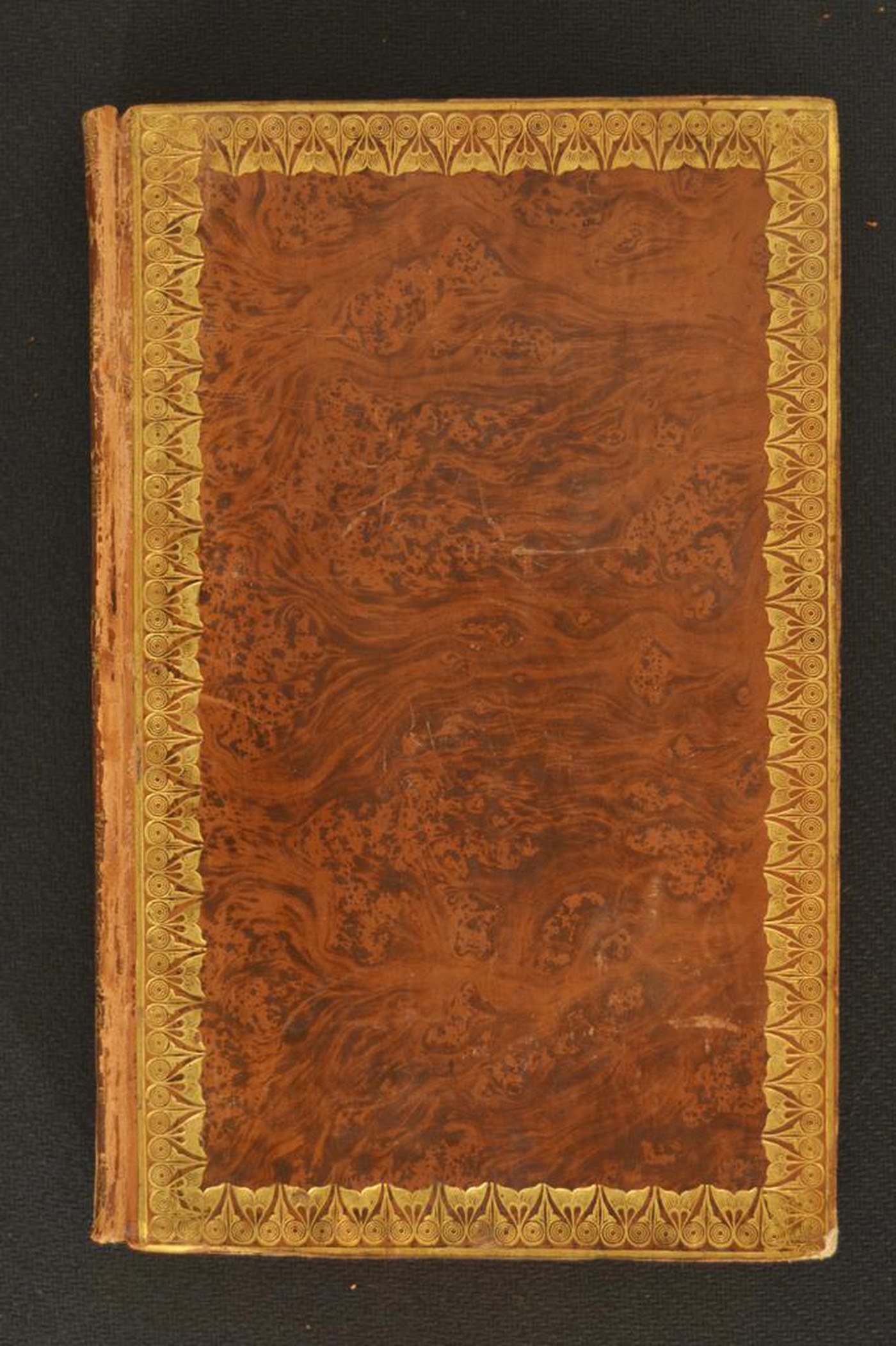 Gli infrequenti motivi e le note tipografiche inducono ad assegnare la legatura al secondo quarto del XIX secolo. In evidenza i tagli dorati brillanti dalle residue tracce rosse del bolo d’Armenia utilizzato quale mordente.