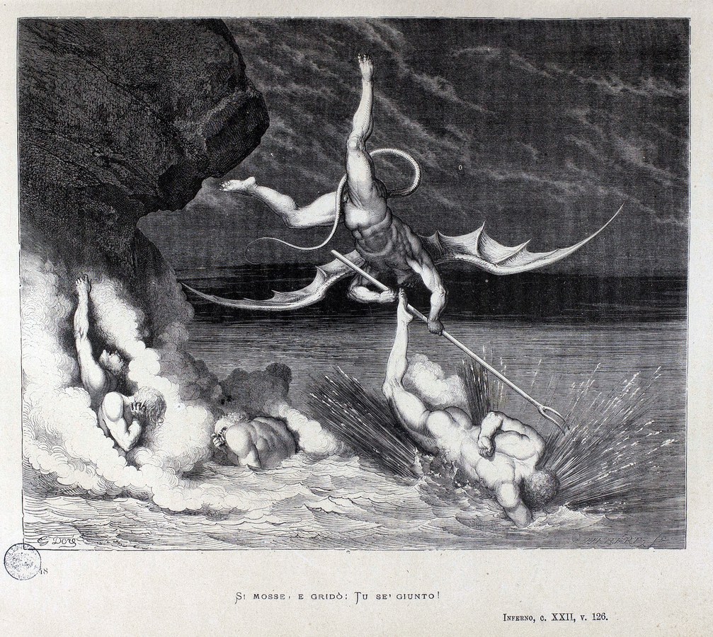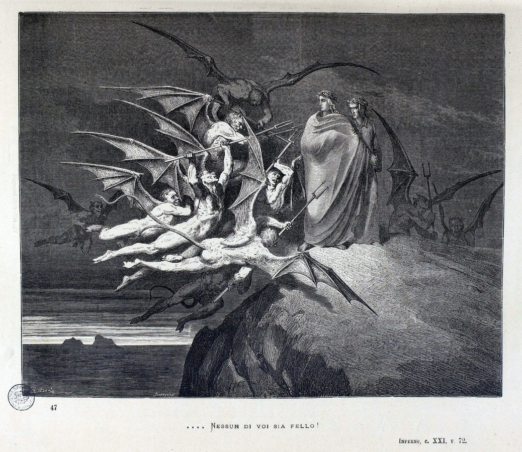 Malacoda e le Malebranche, gli aguzzini della quinta bolgia