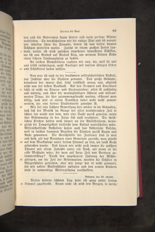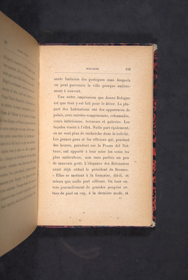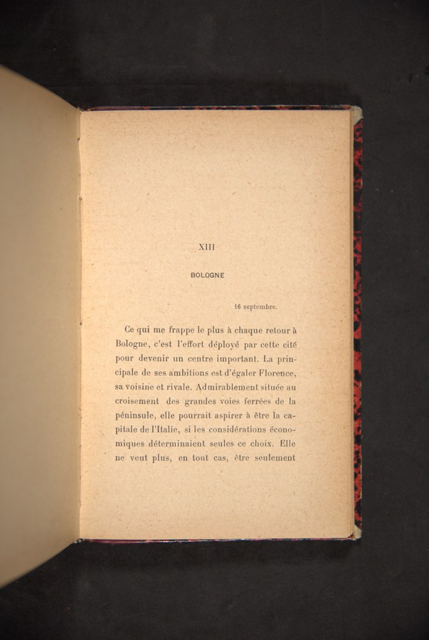 Bologna, sein unregelmäßiger Stadtplan, die Säulengänge, die Kirchen und die aus verschiedensten Geschichtsepochen stammenden Gebäude, die die Architektur der Stadt charakterisieren, stellen nur einige der Aspekte dar, die eine Vielzahl von europäischen Reisenden diverser Epochen und Nationalitäten fasziniert haben. Die künstlerische und architektonische Interpretation dessen, was die oder der Reisende sieht, wird begleitet von Erzählungen über die Atmosphäre, die man in der Stadt wahrnimmt. Das literarische Vermächtnis in Bezug auf die Architektur und Kunst Bolognas erlaubte es nicht nur, die kunsthistorische Entwicklung der Stadt nachzuvollziehen, sondern auch auf Grundlage verschiedener Reiseerfahrungen, wie denen von Antoine Bruzen de la Martinière, Johann Wolfgang von Goethe, Pedro Antonio De Alarcón, Gabriel Faure und Pío Baroja, Vergleiche zu ziehen, wie sich ihr Bild im Laufe der Zeit gewandelt hat.