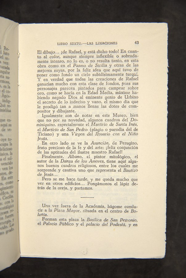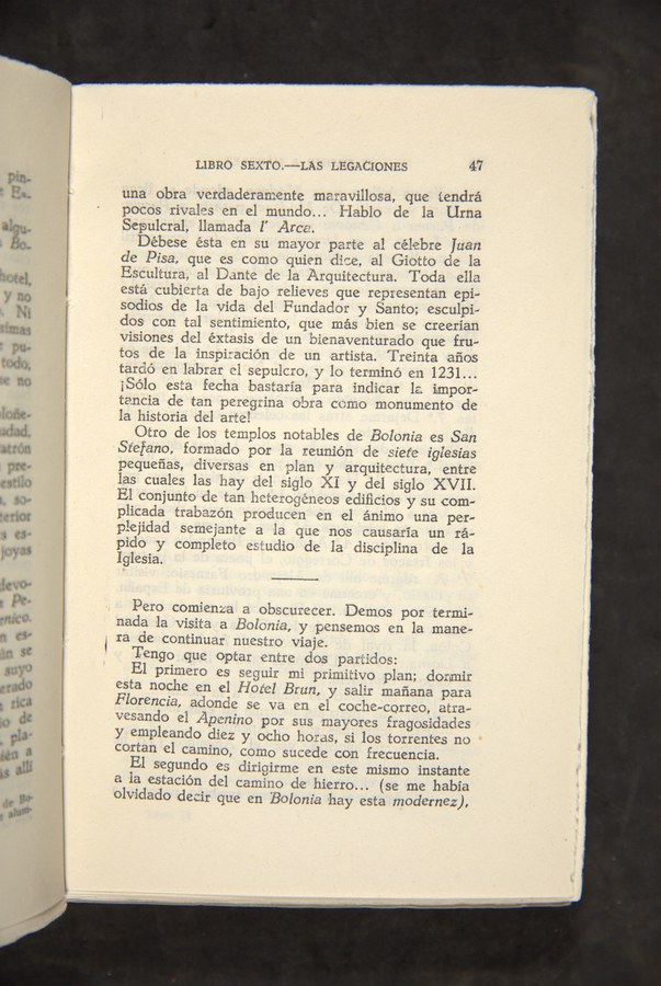 Il patrimonio letterario relativo all’architettura e all’arte bolognese ha permesso non solo di ripercorrere l’evoluzione storico-artistica della città, ma anche di confrontare sulla base di esperienze di viaggio diverse, quali quelle di Antoine Bruzen de la Martinière, Johann Wolfgang von Goethe, Pedro Antonio De Alarcón, Gabriel Faure e Pío Baroja, come la sua immagine sia mutata nel corso del tempo.