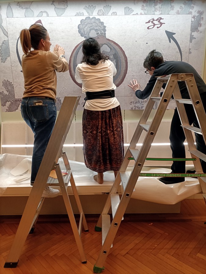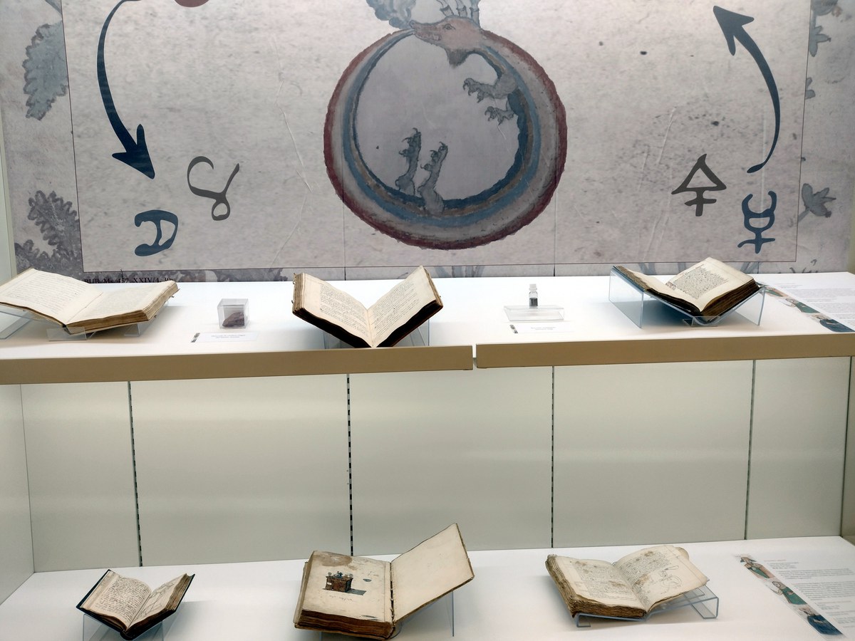 Il percorso espositivo si è sviluppato nelle bacheche dell'atrio dell'Aula Magna dove sono stati allestiti manoscritti, oggetti, fotografie e materiale video prodotti durante la replica in laboratorio di alcuni procedimenti alchemici descritti nei manoscritti esposti. In particolare, le ricostruzioni sperimentali si sono focalizzate su processi di tintura dei metalli e sulla chimica del mercurio.