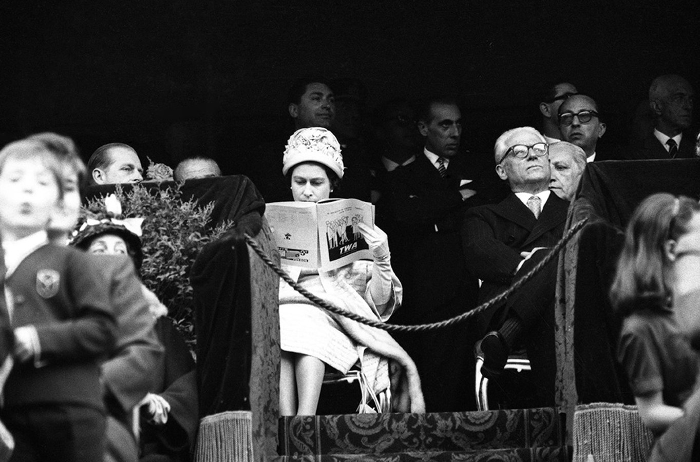 - La Regina Elisabetta II e il presidente Giovanni Gronchi al Concorso ippico a Piazza di Siena. Roma, 3 maggio 1961