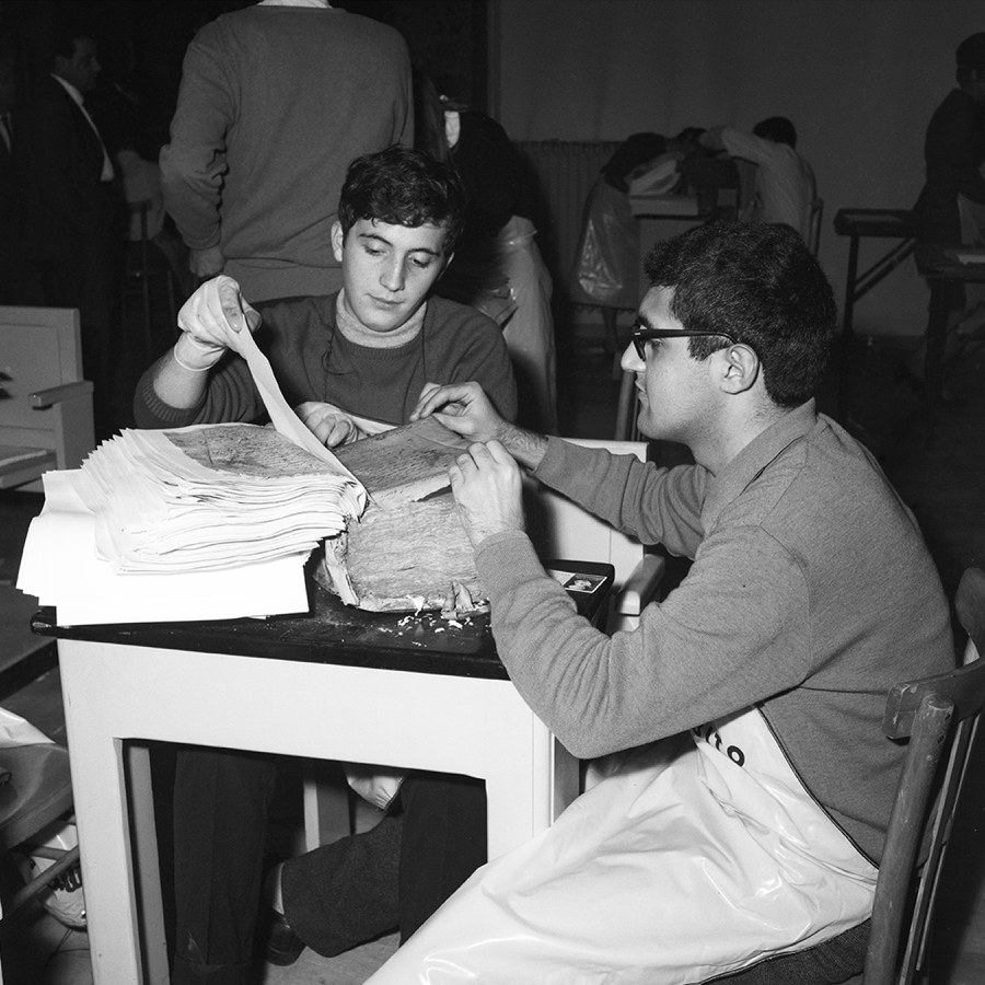 - Centro di primo soccorso per il restauro del materiale librario della Biblioteca Nazionale di Firenze danneggiato durante l'alluvione. Roma, 22 novembre 1966