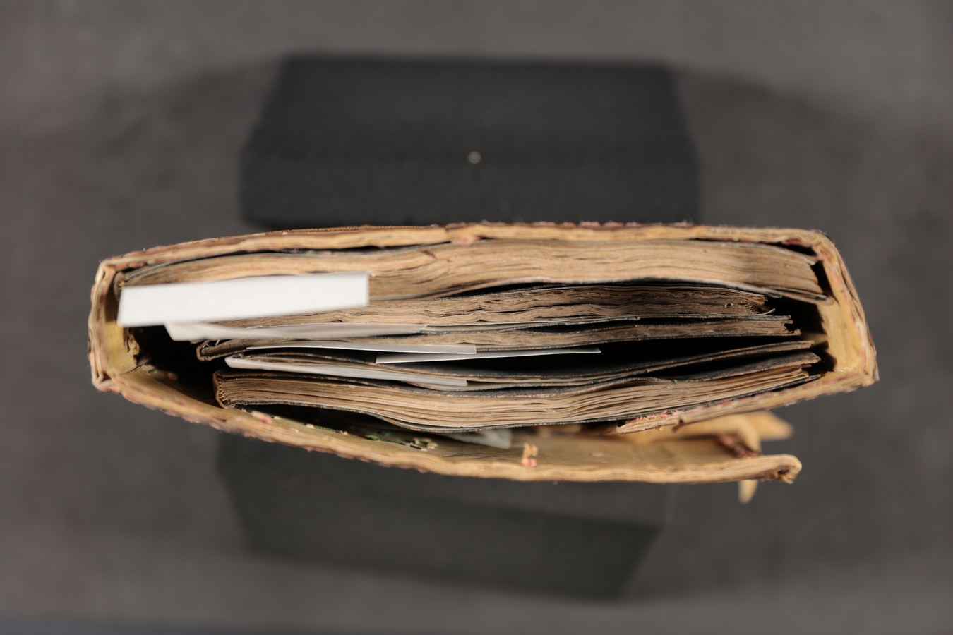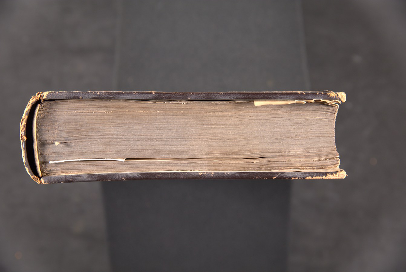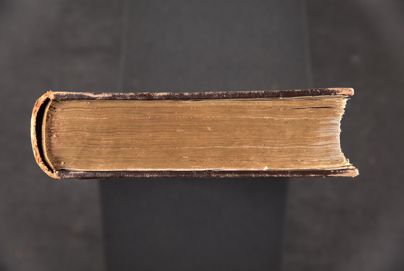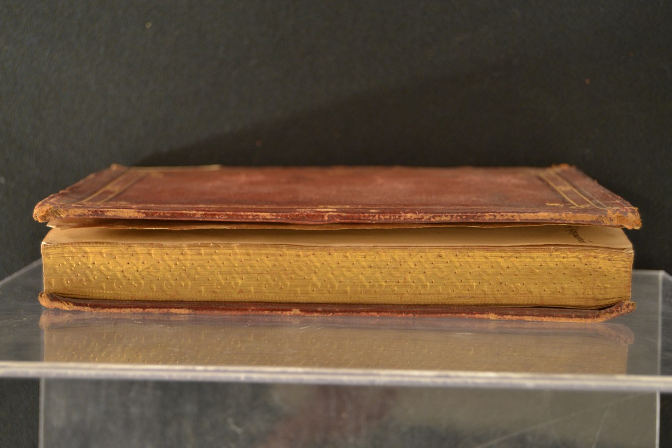 In evidenza i tre nervi a filetto centrale e tratteggiati, qui tutti funzionali al collegamento tra blocco e coperta: nelle produzioni rinascimentali italiane consistono invece solitamente in nervi strutturali alternati a cuciture apparenti.