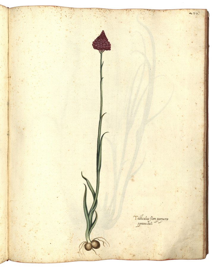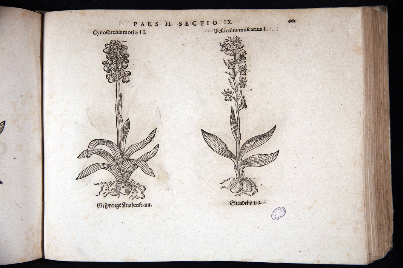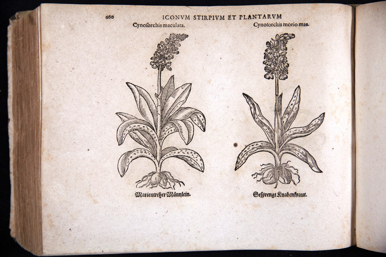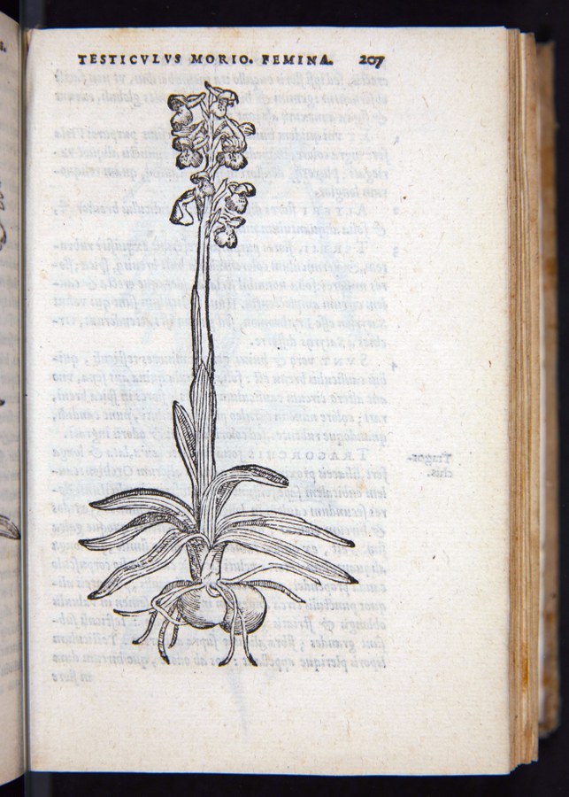 Alle orchidee L’Obel dedica diverse pagine che nell’esemplare appartenuto ad Aldrovandi sono affollate di note a margine. Questi aveva sicuramente ricevuto il compito di collazionare diversi testi di iconografia dedicati al mondo vegetale e di prendere nota dei nomi delle piante presenti nelle trattazioni degli altri autori.