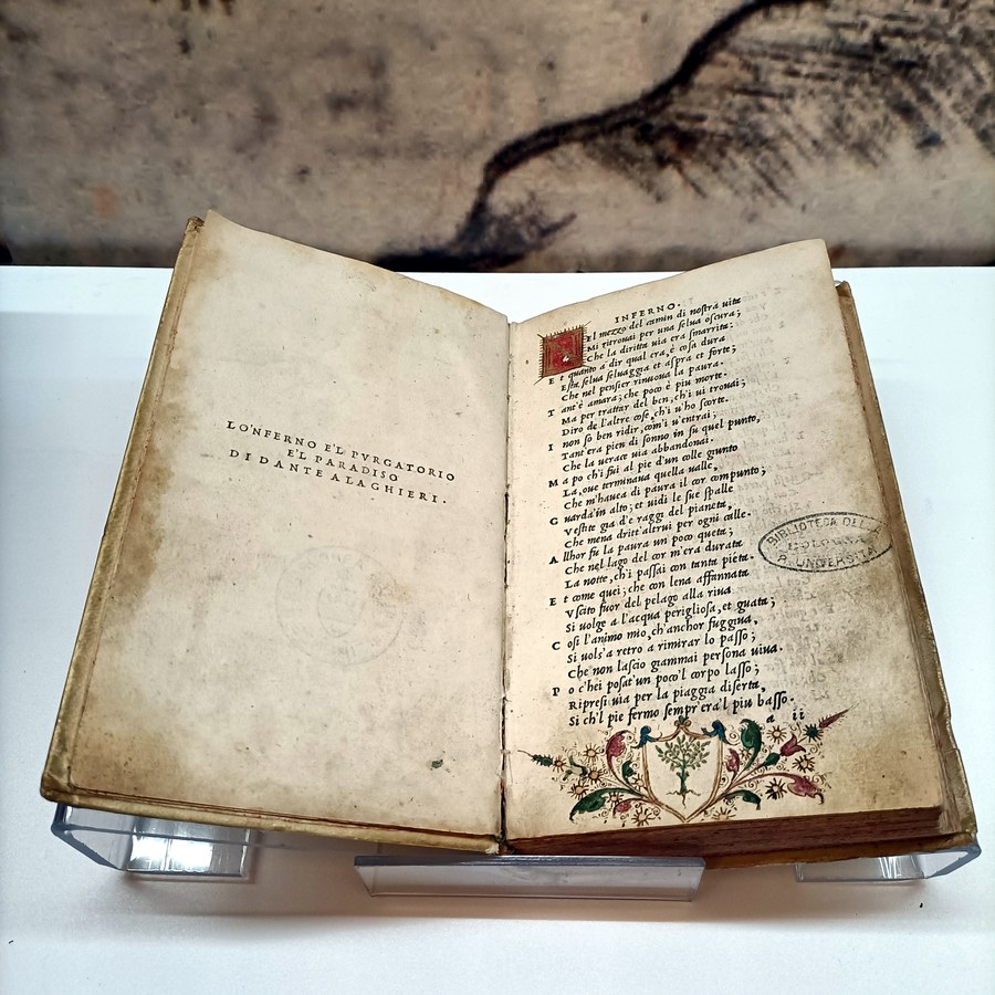Edizione della Commedia uscita dai torchi della stamperia di Aldo Manuzio, in un formato rivoluzionario, l’ottavo piccolo, stampato nel corsivo aldino, in carte non numerate e senza richiami. La celebre stampa è curata da Pietro Bembo, che tenta di ripristinare la fisionomia originaria del testo dantesco con grande attenzione a interpunzione, ortografia e uso dei segni diacritici.