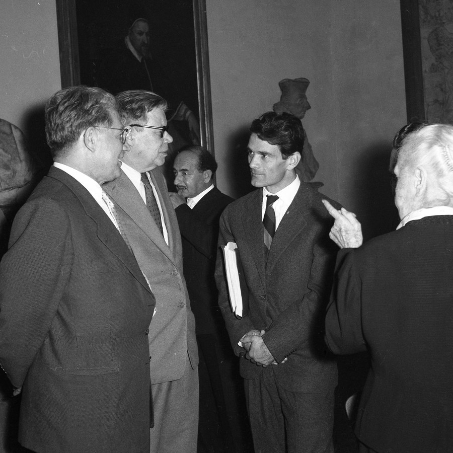 La prima sezione “L'attività intellettuale, culturale e politica” raccoglie una serie di fotografie che documentano l’impegno culturale, politico e intellettuale di Pasolini nel contesto della Roma degli anni ’60 - ’70.